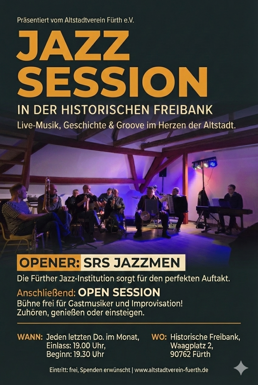 🎷 Es ist wieder soweit: Die legendäre Hot-Jazz-Jam-Session geht in die nächste Runde – und Ihr seid alle herzlich eingeladen! Das Dachgeschoss der Freibank verwandelt sich ein weiteres Mal in ein pulsierendes Zentrum für traditionellen Jazz und Swing!
