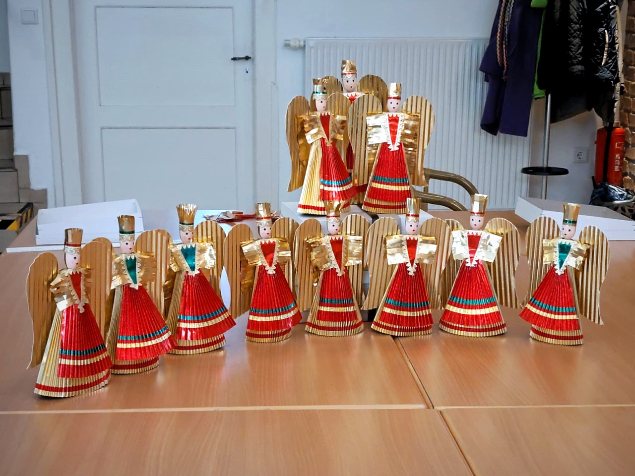 Diese Frage war für die Teilnehmerinnen am Rauschgoldengel-Workshop am letzten Samstag in der Freibank schnell beantwortet: der 24. Dezember ist nicht mehr weit und zum Weihnachtsfest ist schöne Deko gefragt! Unter fachkundiger Anleitung von Uli Friemelt entstanden wunderbare Engel nach historischem Vorbild.